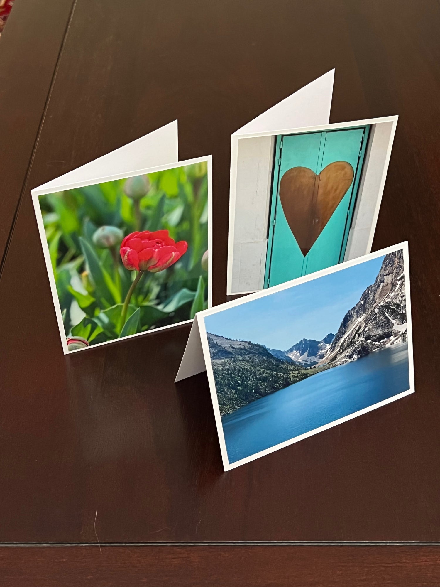 Handmade photo greeting cards that capture a colorful garden, a destination worth exploring, or a door to be opened.